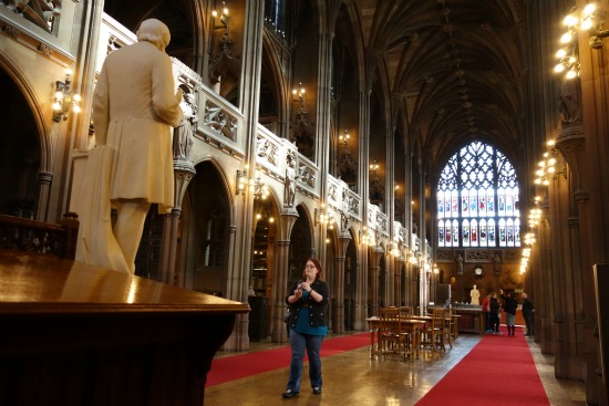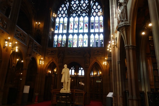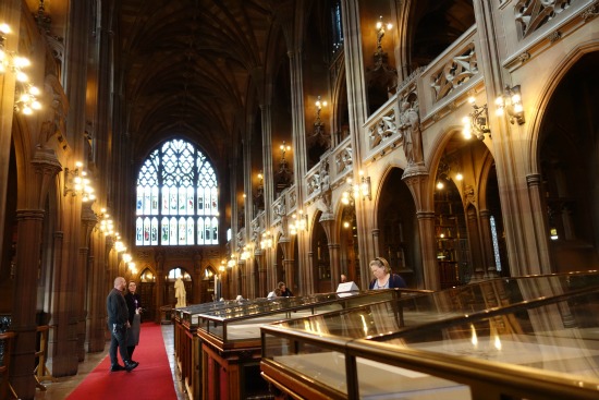 Buscando la catedral, nos topamos con The John Rylands Library. Esta biblioteca fue fundada por Enriqueta Rylands en memoria de su marido John. Está ubicada en un edificio gótico que fue diseñado en 1889 y abierto al público el 1 de enero de 1900.