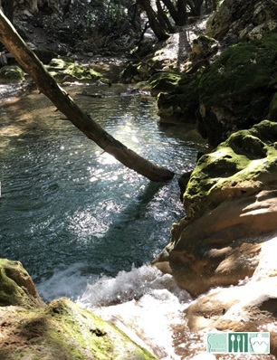 Pasada la segunda valla, os encontrareis el pequeño arroyo que os comentaba antes; nosotros lo pasamos sin dificultad de piedra en piedra. Seguimos camino hacía abajo y ya divisamos el "Salt", que podéis bordear y bajar para disfrutar de las mejores vistas.