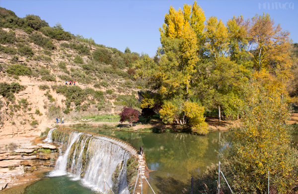 Hizo un día de diez, ni frío ni calor. No era mi primera vez en Alquézar porque cuando estaba en el colegio hice más de una excursión por la zona, pero apenas lo recordaba. Más que el pueblo en sí, adoré una ruta por el monte en la que vas de pasarela en pasarela, que tiene unas vistas maravillosas para admirar el otoño en todo su esplendor (como las de ). En primavera también tiene que ser una pasada y merecen la pena las casi dos horas de recorrido, aunque los días siguientes estuve con unas agujetas terriblemente terribles... ¡si es que tengo que hacer caminatas campestres más a menudo! xD