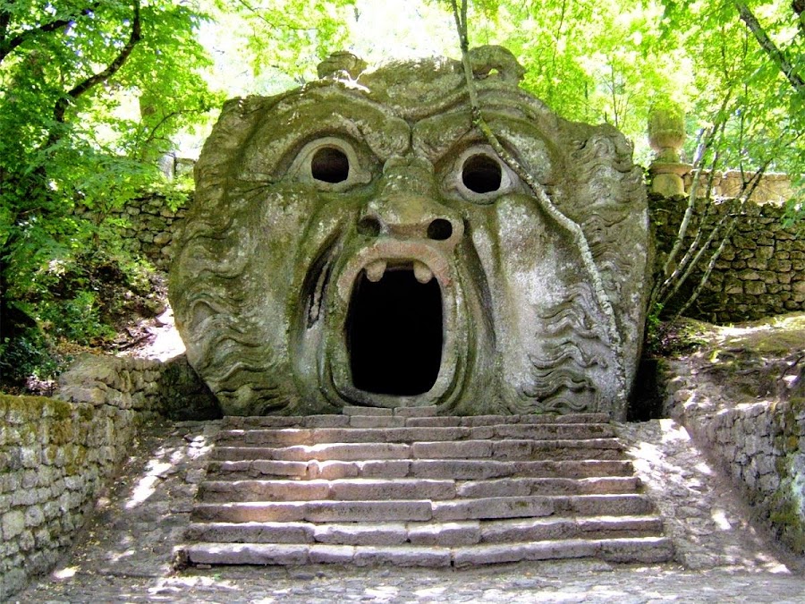 La escultura que más llama la atención es el Ogro, puedes entrar por la boca de esta extraordinaria escultura, aunque la verdad es que dentro no encontrarás nada más que una mesa y frescor si vas en verano. También destaca la casa inclinada, el elefante, la tortuga, los dragones, diferentes dioses romanos? Es un parque al aire libre muy diferente a todos los que había visto con anterioridad con grandes esculturas de piedra que te dejarán perplejo.