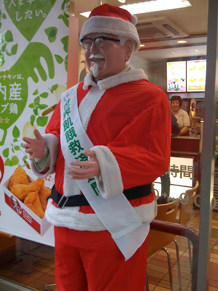 Cada fiesta y cada cultura tiene sus comidas y dulces típicos, puede que para nosotros sea mazapán y turrón, pero para los japoneses la Navidad es sinónimo de KFC. Todo fue fruto de una casualidad. Hace 40 años gracias a una campaña de marketing, el Coronel Sanders invitó a los japoneses a comprar su pollo frito como cena de Navidad y desde entonces el día 25 de diciembre los establecimientos KFC se llenan de clientes que siguen esta curiosa tradición transmitida de padres a hijos.
