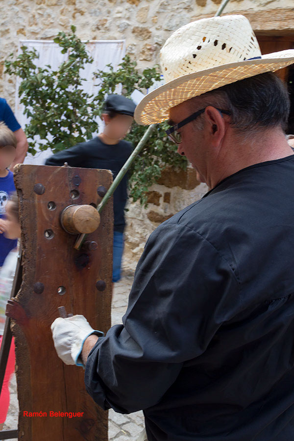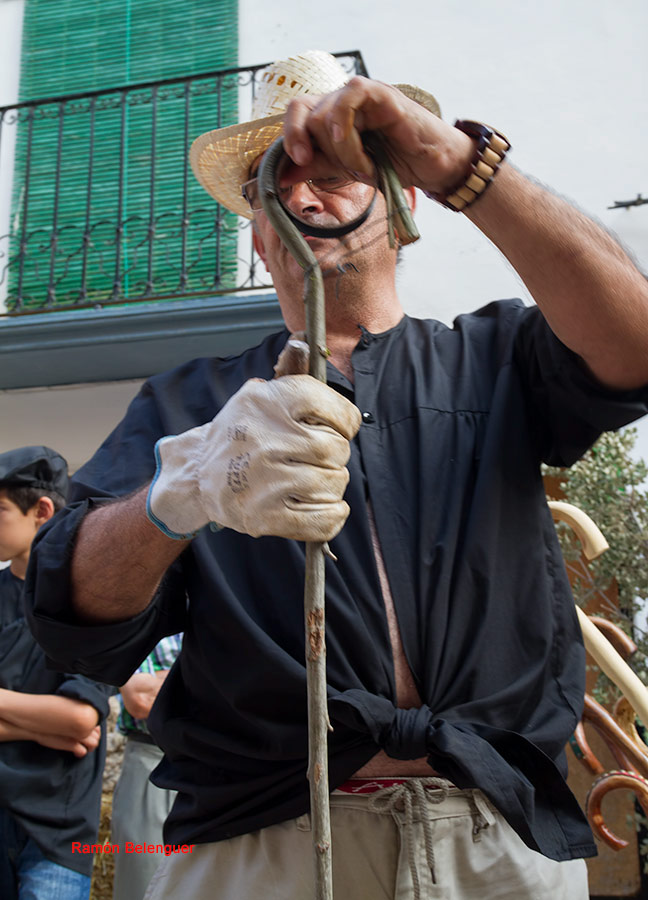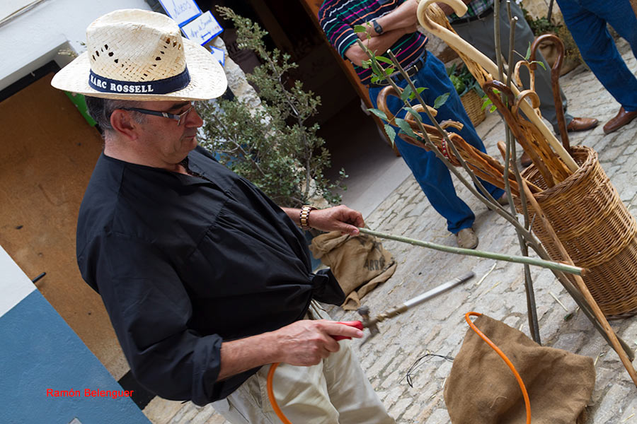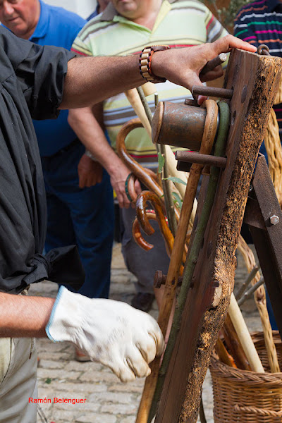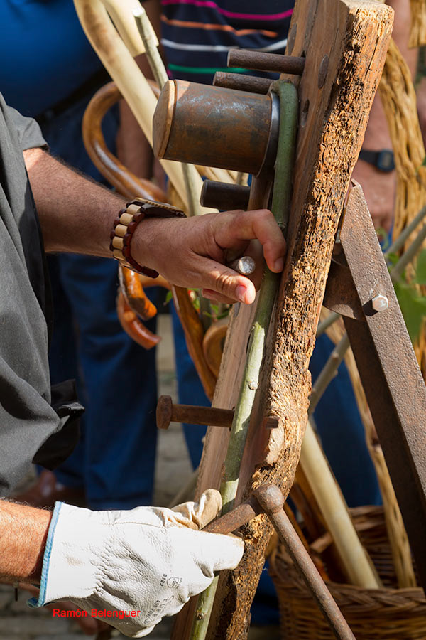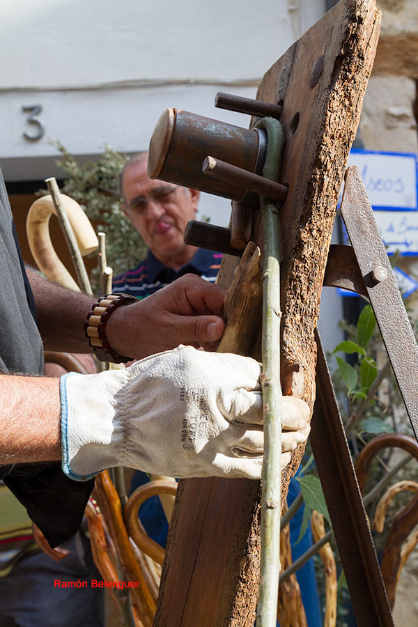 Antes de que se enfríe la madera se endereza y se le va dando la forma adecuada al bastón que se quiere fabricar.