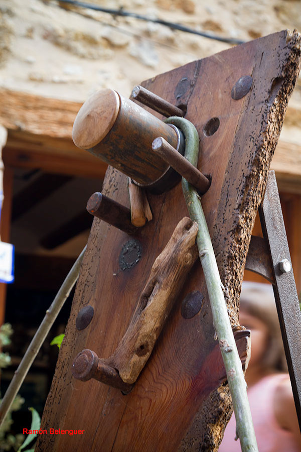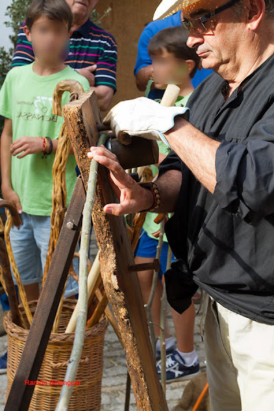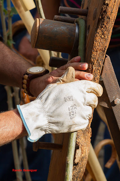 Para poder moldearla hay que calentarla. Una vez que se ha calentado con el soplete y la hormapara pelarla, que es quitarle la corteza, y dejar la madera blanca.