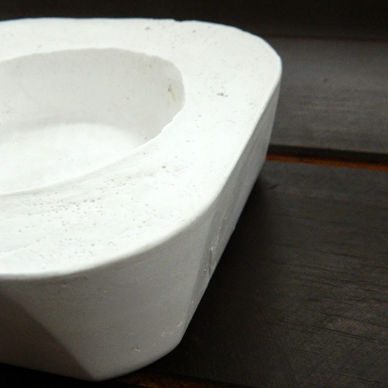 Ahora que tu preparación reposa tranquilamente en su molde, armate de un poco de paciencia para esperar que solidifique. Comprobarás que por esos misterios que tiene la química, tu proyecto de diez minutos comienza a liberar calor. Bueno, creéme lo siguiente: ni se te ocurra desmoldar hasta que se enfríe. Dicen los que saben del tema que eso se llama "reacción exotérmica" y si no dejás que cumpla su rollo personal, la pieza se quiebra. Obvio, te lo cuento porque no llevo la cuenta de los años que hace que rompo piezas por apurarme a verlas terminadas. Y porque descubrí que si la desmoldo cuando no está totalmente sólida, puedo darle a los bordes una apariencia tersa y lustrosa solo con pasar un dedo sobre ellos. Como puedes ver en la imagen precedente (y dicho de esta forma, siento que estoy escribiendo sobre un tema muy importante).