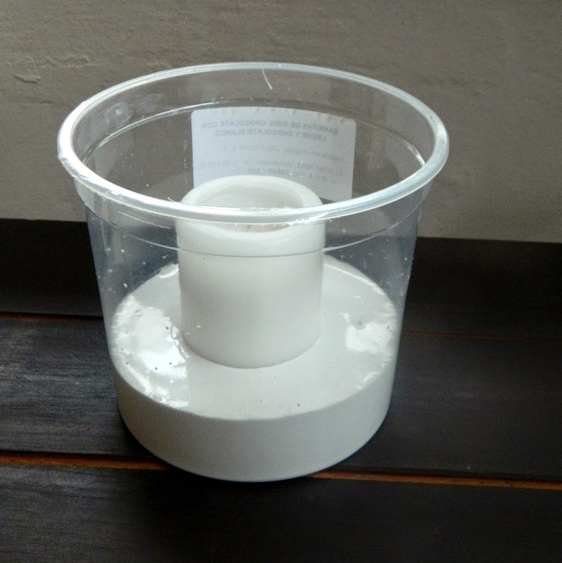 Preparar yeso es sumamente fácil. Ni siquiera se necesitan proporciones exactas para lograr un buen resultado. Tomá en cuenta mezclar el polvo con la cantidad suficiente de agua como para lograr una pasta con la consistencia de la mezcla para panqueques. En el caso de que necesites una referencia científica: "ni muy muy ni tan tan". Ni muy líquida ni muy espesa. Esa es toda la ciencia detrás de mi fanal DIY. No lo podés creer, ¿verdad? Sí. Le dediqué un párrafo a la más pedestre mezcla de yeso y agua.