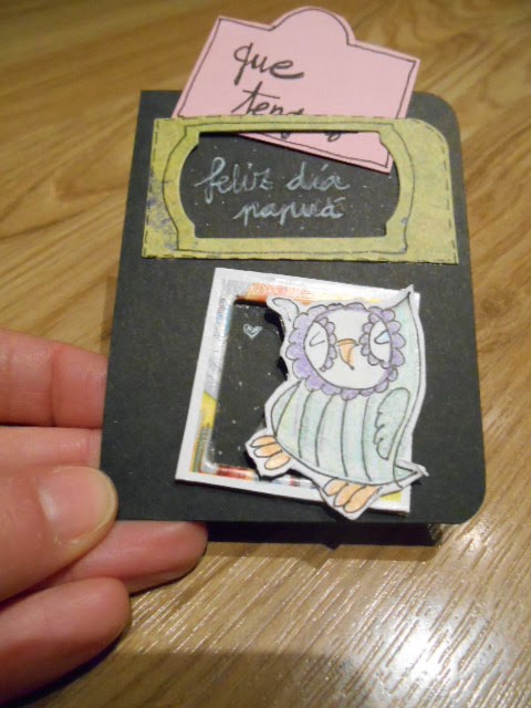Para mi papi le he hecho esta tarjeta mágica, llena de buhitos que le encantan, con esos ojazos que lo ven todo, espero que os gusten...