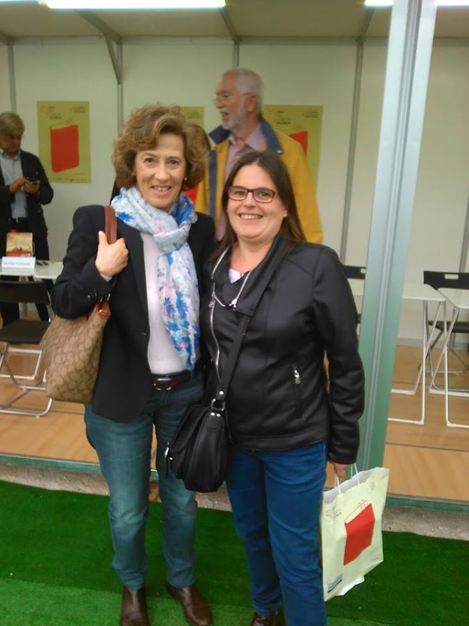 Ahí tenéis fotos de Julia Navarro mientras estaba en un encuentro con autores, haciendo una entrevista televisada en la carpa central de la Feria del Libro de Valencia, de la mano de Manolo Gil.