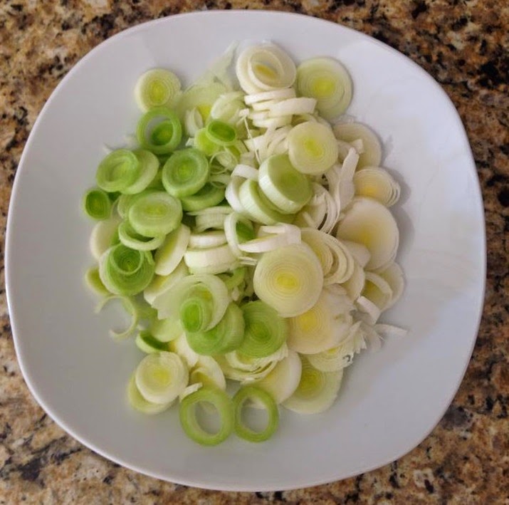 2. Mientras, se cortan los puerros en rodajas: