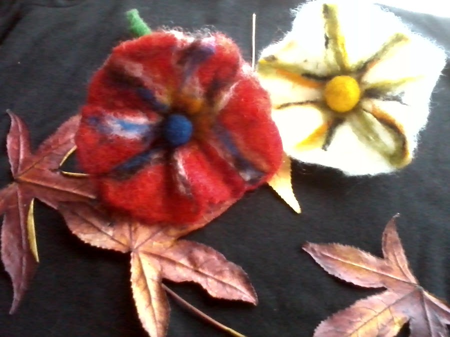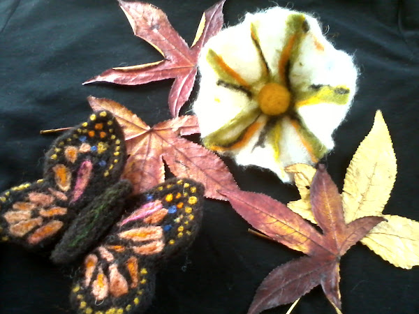 Cambiando radicalmente el tema ,les paso a contar que el gusto por el fieltro a ido en aumento, ya les enseñé en entradas anteriores mis insipientes trabajos en este bello y noble material , como es el vellón de lana...Mis trabajos comenzaron con el fieltro agujado y bueno hace poquito experimenté con la técnica del fieltro húmedo y amasado con agua y jabón...Les confieso que en un inicio fue sólo curiosidad pero ya es casi una pasión...