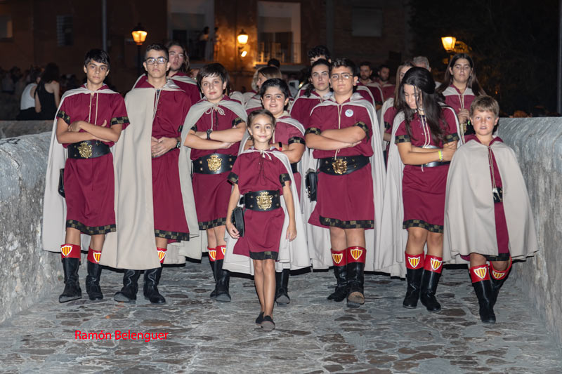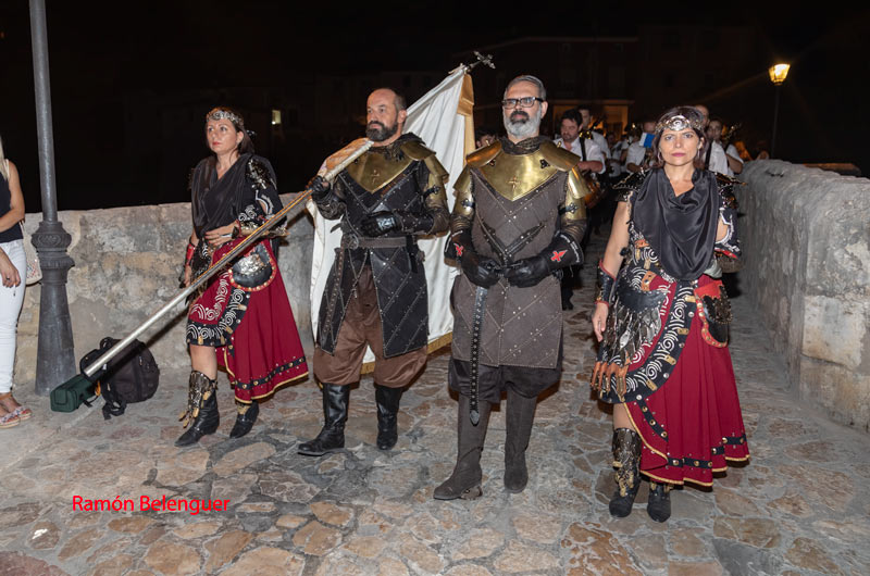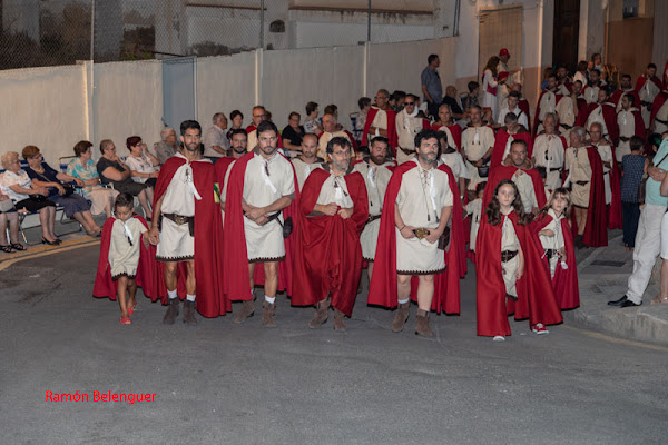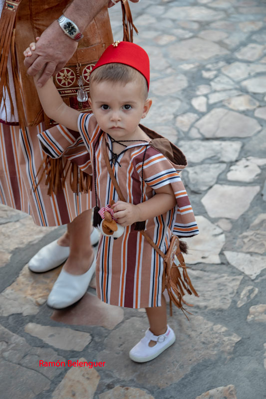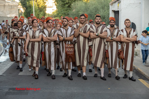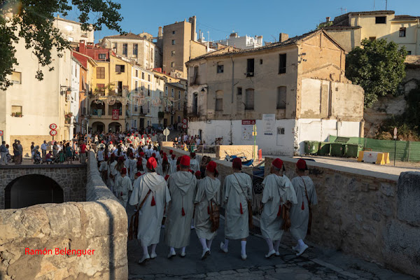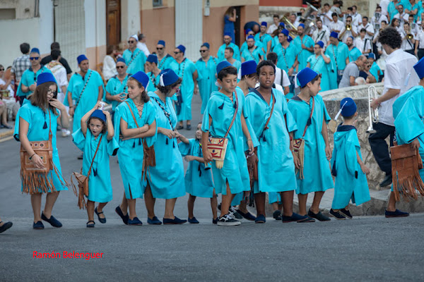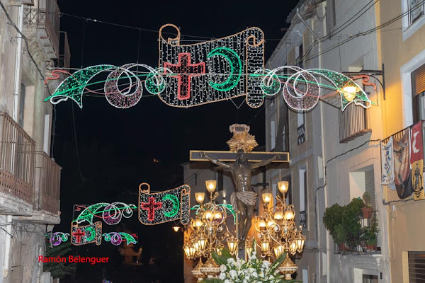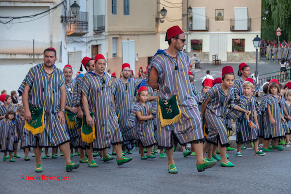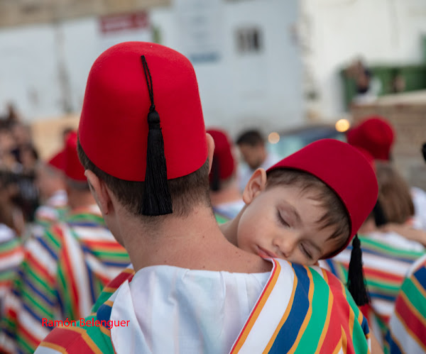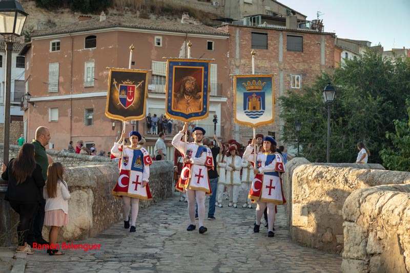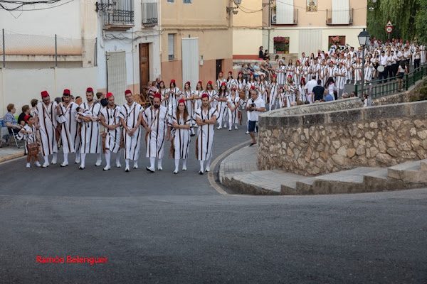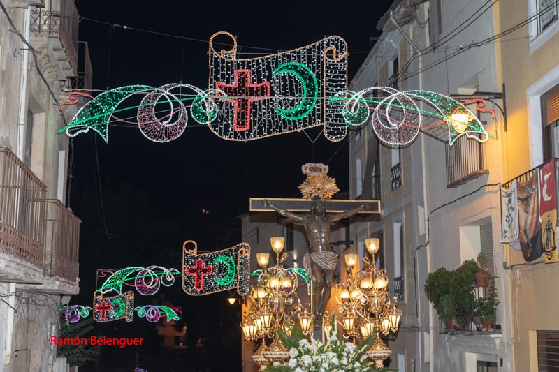 Los cristianos salen desde la loma de Santa Ana, mientras que los moros lo hacen desde la Glorieta, todos ellos acompañados de trabucos, arcabuces y espingardas. Una vez los dos bandos se encuentran en el parque del Escorxador, las festeras y festeros formarán en procesión acompañando al Santísimo Cristo de la Agonía, a quien se le dedica la fiesta morocristiana en Ontinyent, hasta la iglesia de San Carlos, donde permanecerá hasta el próximo 8 de septiembre, cuando volverá a la Ermita de Santa Ana.