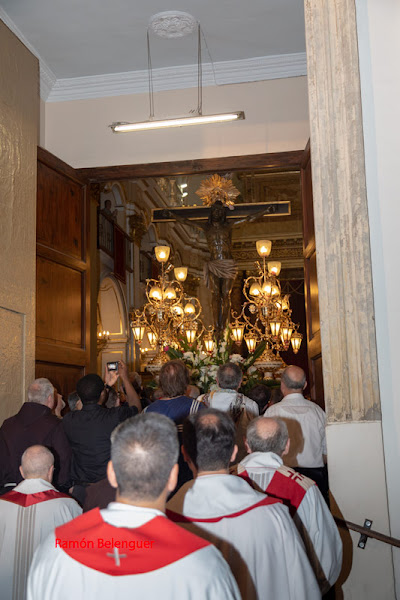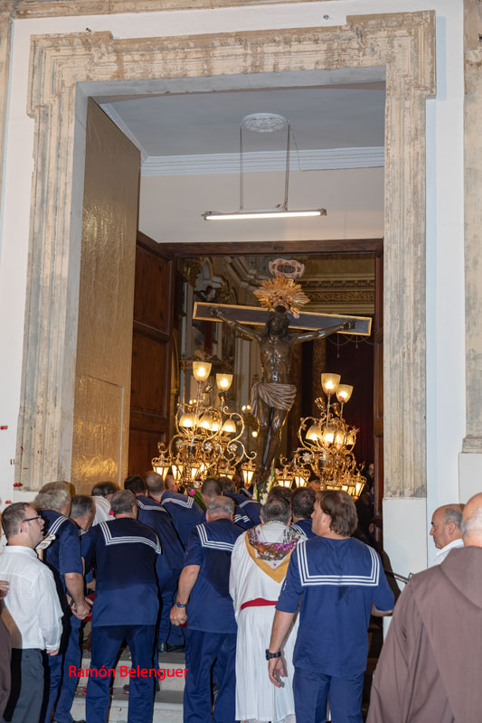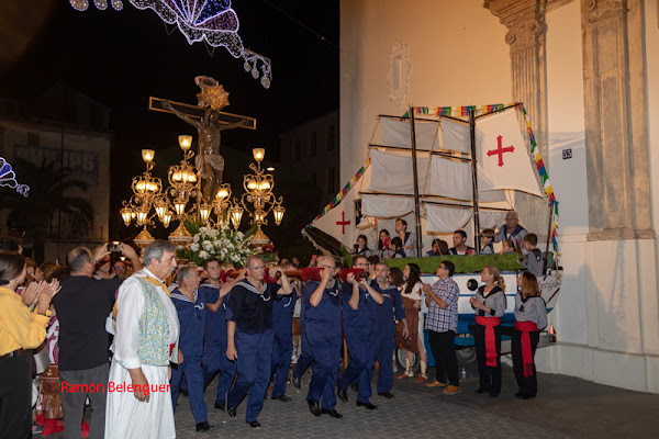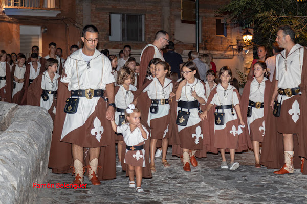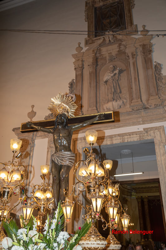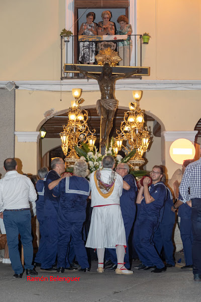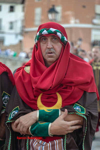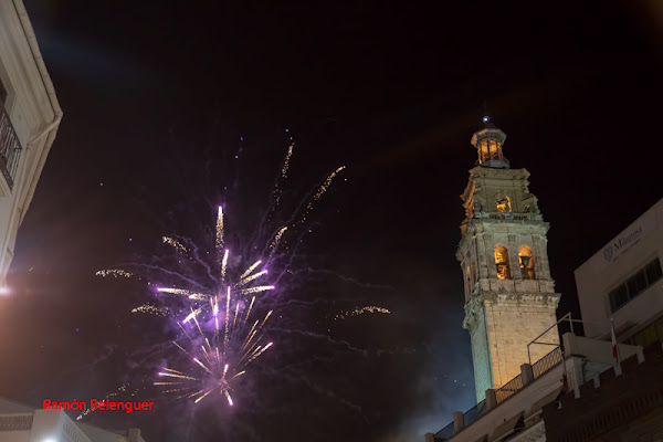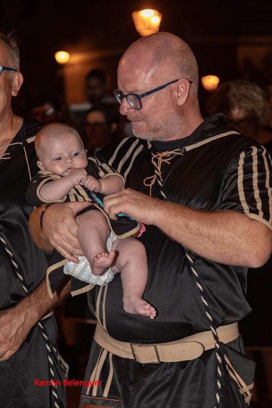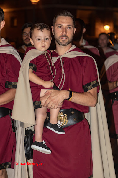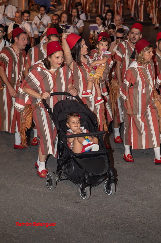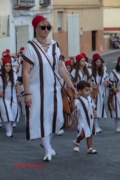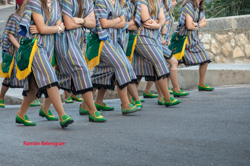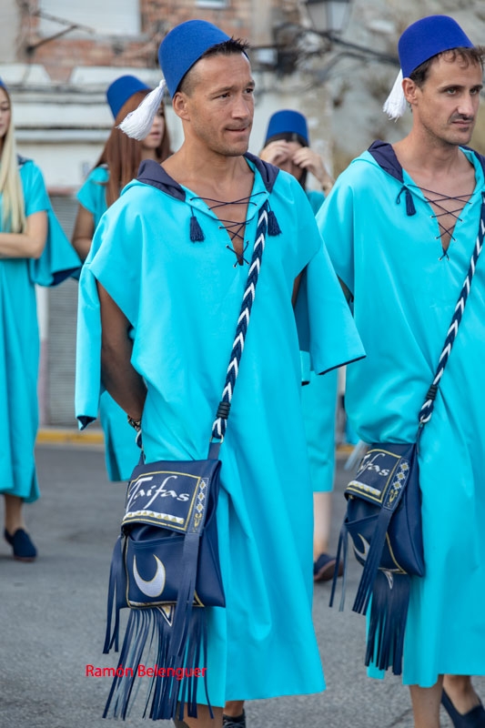 Los cristianos salen desde la loma de Santa Ana, mientras que los moros lo hacen desde la Glorieta, todos ellos acompañados de trabucos, arcabuces y espingardas. Una vez los dos bandos se encuentran en el parque del Escorxador, las festeras y festeros formarán en procesión acompañando al Santísimo Cristo de la Agonía, a quien se le dedica la fiesta morocristiana en Ontinyent, hasta la iglesia de San Carlos, donde permanecerá hasta el próximo 8 de septiembre, cuando volverá a la Ermita de Santa Ana.