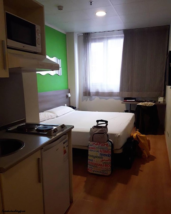 Nos alojamos en el Hotel Vertice Roomspace en Getafe, que con lo bien comunicado por el cercanías a pie de puerta en 10 minutos escasos nos plantábamos en el centro de Madrid. Un hotel muy grande con muchas habitaciones dotadas de cocina, lo cual nos resultó muy cómodo para poder desayunar y cenar en la habitación después de pasar todo el día pateando. De 10.