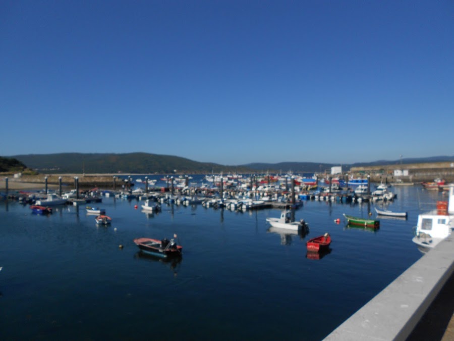 El camino de vuelta se hace más ameno, al llegar al pueblo paseo por el puerto y también me mojo los pies en la playa; llena de algas, diminutos bichitos y el agua muy sucia, pero por no decir que estuve en Finisterre y no puse los pies en el agua, cierro los ojos y meto los pies en el agua.