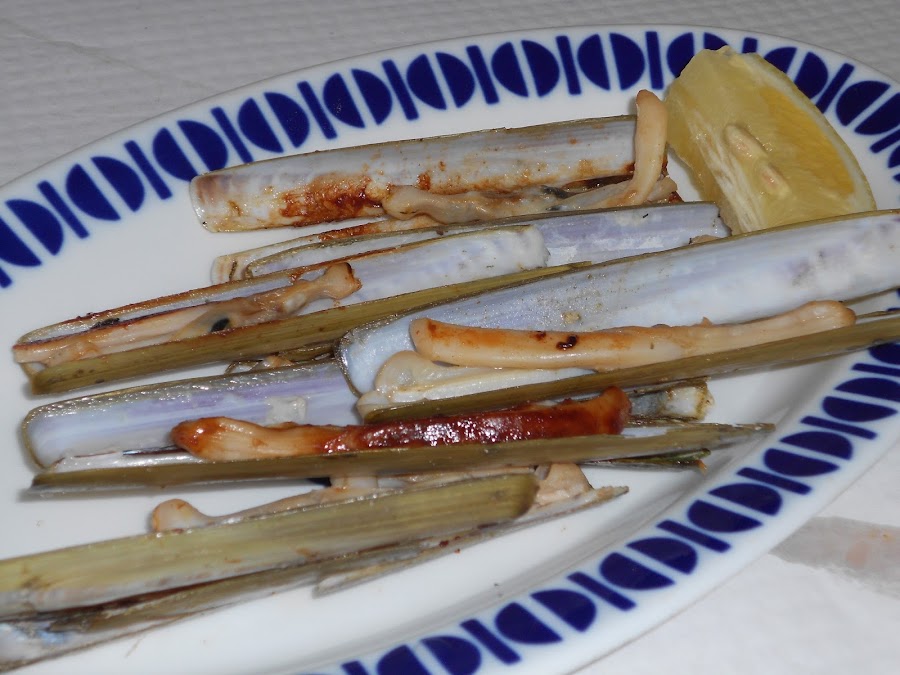 Me dejo aconsejar por la camarera y pido media mariscada; almejas, navajas, percebes, 1 nécora, 1 buey de mar y una copita de ribeiro.
