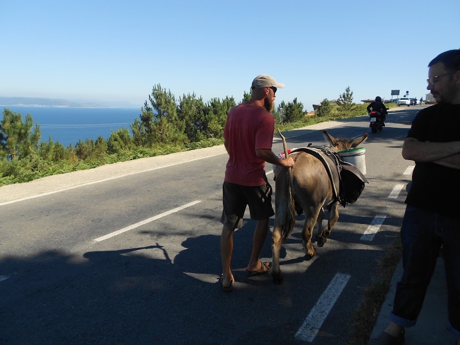 Cuando me dispongo a bajar, veo al chico Húngaro que iba etapas atrás acompañado de un burro. ¡Qué fuerte!, ha llegado hasta el fin del mundo con un burro.
