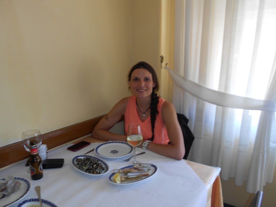 Al llegar al albergue: Cabo de Vila (normalito), dejo mis cosas y me dirijo hacia la marisquería Don Percebe, recomendada por varios lugareños. Entro y mientras espero a que me preparen una mesa para comer, pido un quinto y de regalo me ponen una deliciosa tapa de pulpo.