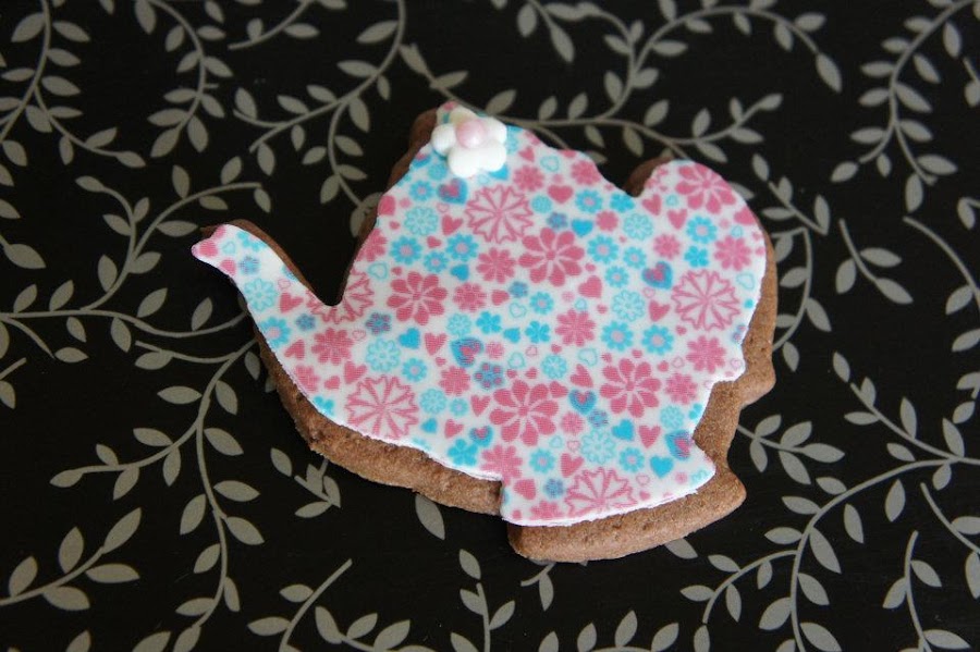 El resultado en las galletas me encanta, creo que quedan muy elegantes. Es muy cómodo de usar, hay que marcar fuerte con el cortador sobre el fondant impreso, y luego despegarlo con cuidado del resto de la placa. Por lo demás, se emplea como cualquier fondant, se puede usar sobre el la imprenta para poner letras, y se pega con mermelada, agua, etc. Y de sabor está muy bueno!!!