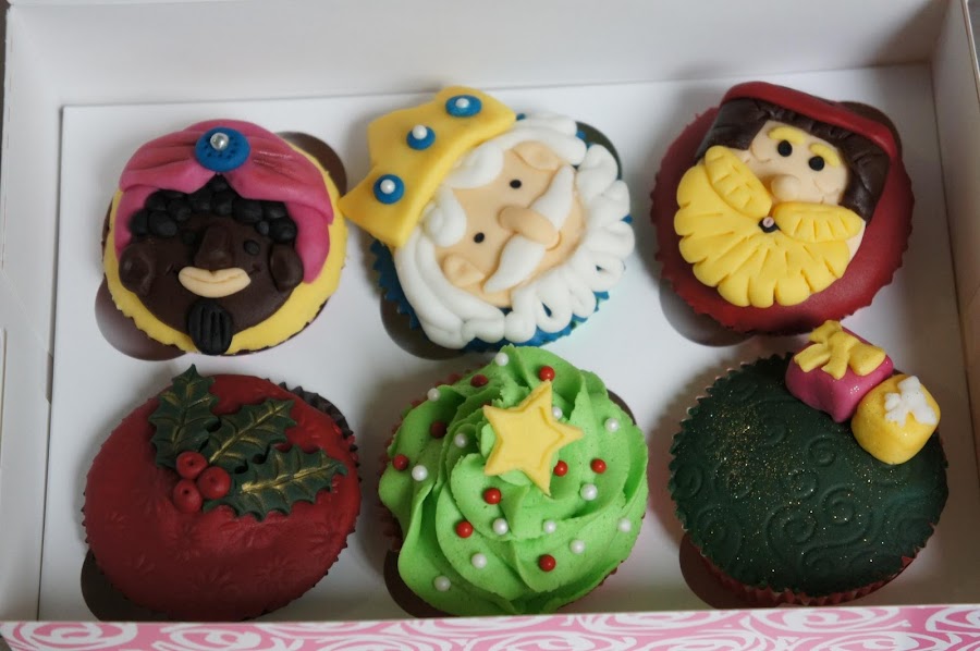 Y entre galleta y galleta, encontré un hueco para asistir a un curso de cupcakes en http://www.lovecupcakesvigo.com/ y este es el resultado en forma de reyes magos y cupcakes de navidad.