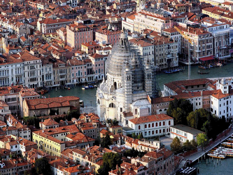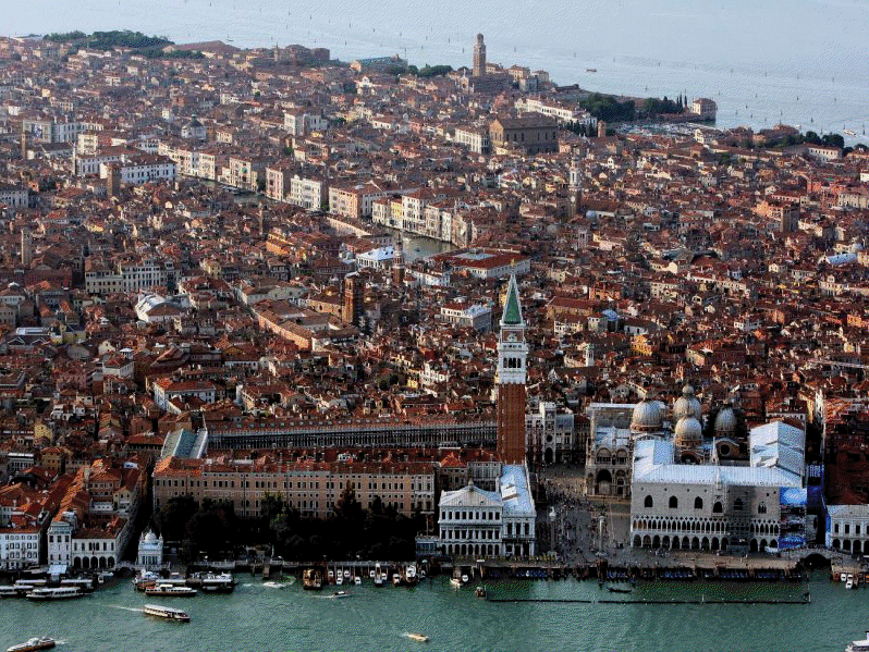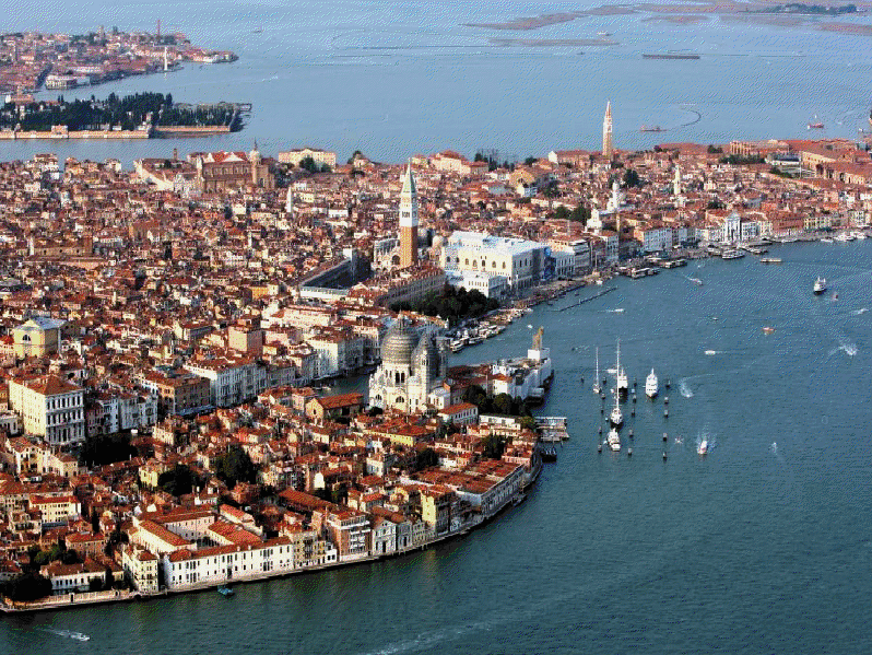 En el siglo IX, mientras que la mayor parte de Italia estaba en manos de los francos, el pequeño Estado lagunar encontró en las islillas del Rialto su centro político y su nuevo núcleo de agregación urbana; el dogo (doge en veneciano) que ejercía el poder, apoyado por la aristocracia local, consiguió la autonomía del Imperio de Oriente y comenzó así para Venecia una secular y gloriosa historia de dominio sobre el mar, de intensos tráficos comerciales con Oriente y extraordinario desarrollo artístico, con rasgos de gran originalidad, ya que Venecia no era ciudad completamente oriental, ni del todo occidental, sino un punto de fusión original y dinámico de las dos tradiciones.