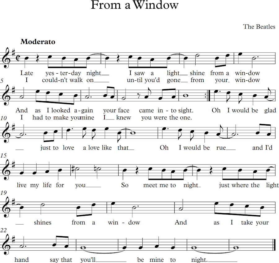 From a Window. Partitura para flauta dulce. Melodía de una canción de The Beatles. La podemos trabajar a partir de 5º de Primaria con los alumnos.