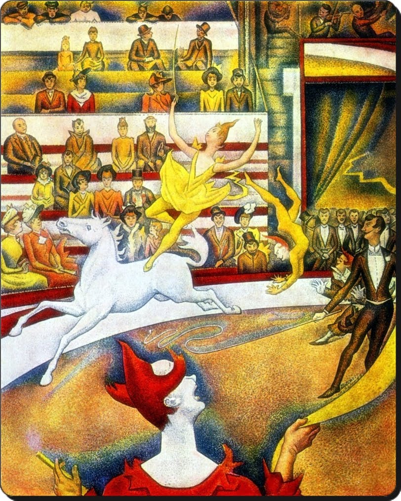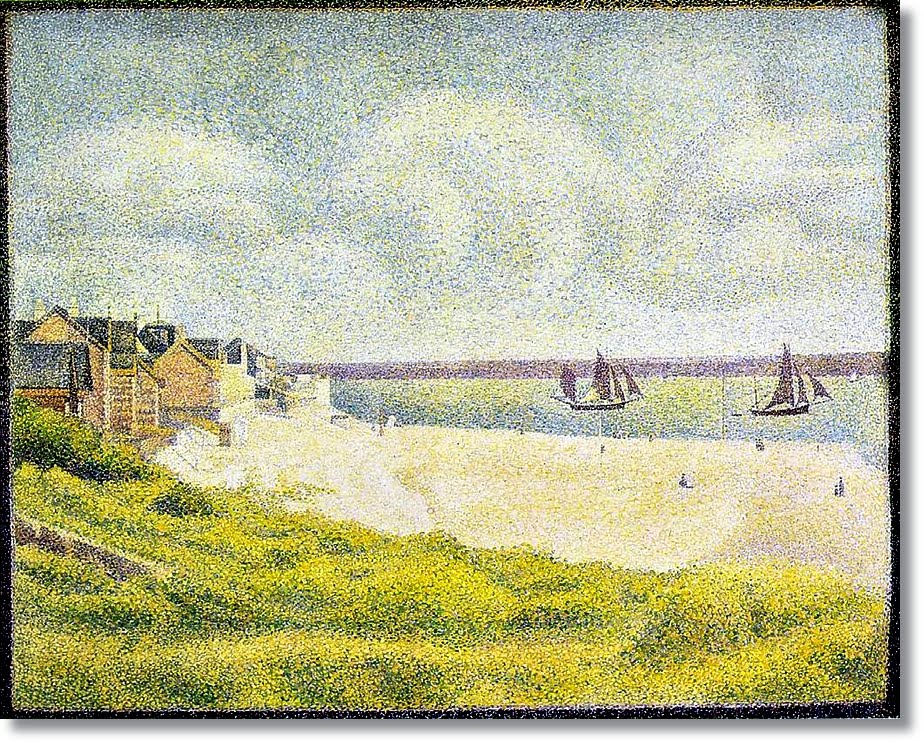 Pintor francés, uno de los máximos representantes del neoimpresionismo. Seurat nació en París, el 2 de diciembre de 1859 y recibió su formación en la Escuela de Bellas Artes. Rechazando el efecto borroso de las pinturas impresionistas, realizadas con pinceladas irregulares, inventó la técnica más científica del puntillismo, en el que las formas sólidas se construyen a partir de la aplicación de muchos pequeños puntos de colores puros sobre un fondo blanco. El revolucionario puntillismo de Seurat encontró muchos seguidores e imitadores. Muchas de las teorías de Seurat referidas a la pintura derivan del estudio de los tratados contemporáneos de óptica. Su tendencia científica se refleja también en sus hábitos de trabajar, que incluían horarios fijos y una meticulosa sistematización de su técnica. En 1884 Seurat acabó Los bañistas (Londres, National Gallery), una escena donde unos jóvenes se bañan en el río Sena, éste fue el primero de seis grandes lienzos que conformaron la mayor parte de su trabajo artístico. En ése y otros trabajos posteriores, continuó la tradición impresionista de mostrar las excursiones y distracciones de los días festivos. Su obra maestra, Un domingo de verano en la Grand Jatte (1884-1886, Instituto de arte de Chicago), representa a los paseantes del domingo de una isla del Sena. La pintura muestra una atmósfera de dignidad monumental a través de un orden equilibrado de sus elementos y los contornos de sus figuras. Las modelos (1888, Colección Barnes de Filadelfia), La parada (1889, Colección de Stephen Clark, Nueva York), El chahut (1889-1891, Museo Kröller-Müller, Otterlo, Holanda) y El circo (1890, París, Museo del Louvre) son otras de las grandes obras de Seurat.