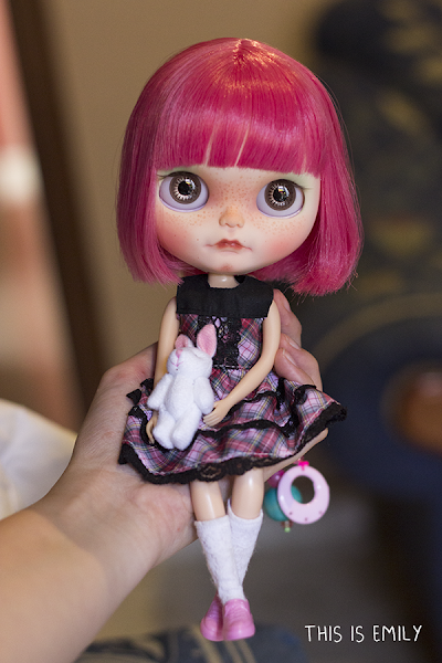 Así que decidí dejarla en manos de una de las mejores customizadoras de Blythes que conozco, una profesional, una gran persona y una gran amiga. Se trata de Isa, más conocida como Dafnery, y si no la conocéis deberíais, porque es lo más de lo más, además de customizadora también hace ropita y gorros peludos para nuestras muñes.