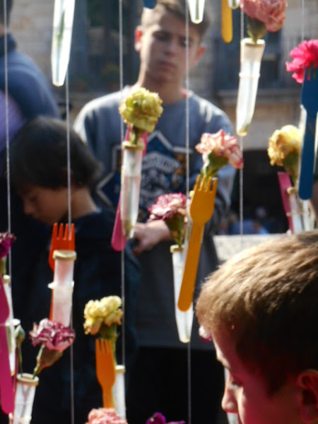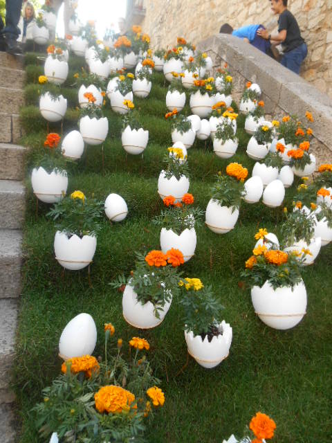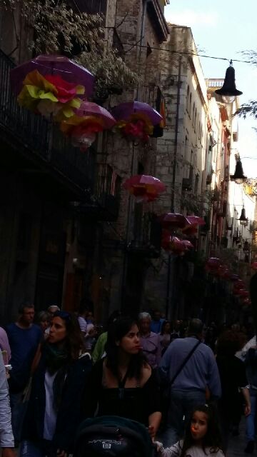 Nada más llegar te encuentras con el río Ter y con los puestecitos de artesanos, aiiinnnss qué cosas más bonitas, pero qué precioooosss, en la calle que iba hacia el gótico los coles habían hecho sus manualidades, a cuál más bonita