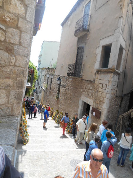Este mes pasado de mayo nos fuimos de excursión a Girona, sí sí, increible Jordi quería ir a ver Girona en primavera!! la festa popular de "Temps de flors", yo hacia más de 20 años que no iba a Girona y no la recordaba tan bonita, todo el casco antiguo es una belleza y más ahora con todo engalanado y primaveral, patios, jardines, tiendas, casas... precioso!! pero había gato encerrado en que Jordi quisiera ir hasta Gerona a ver florecillas... jajaja!! y es que Girona fue el escenario de "Juego de Tronos" y no podía perderse estar en el escenario de una de sus series favoritas, jajaja!! aixxx que picarón que es mi friki!!