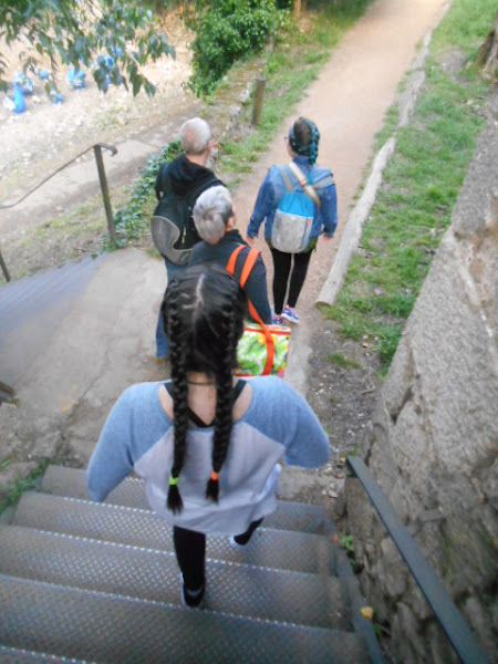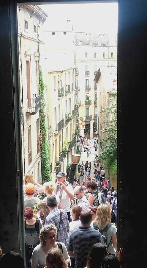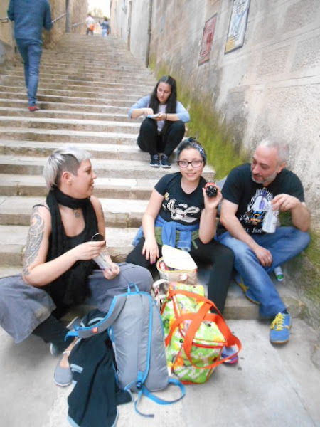 esas escaleraaas... el Paseo de la Penitencia, castigo en que obligan a ir desnuda a Cersei por Desembarco del Rey hasta la fortaleza Roja, mientras la insultan y tiran comida y escupen; allí mismo comimos en la mismísima escalera, qué emocionado estaba Jordi, como le chifla esta serie!!
