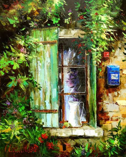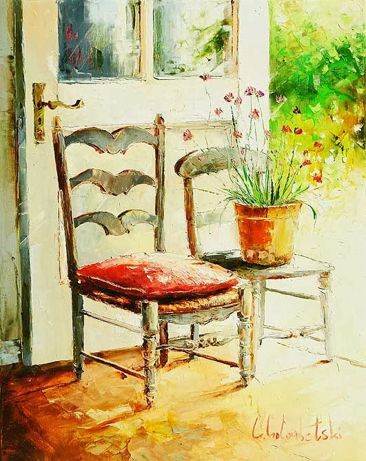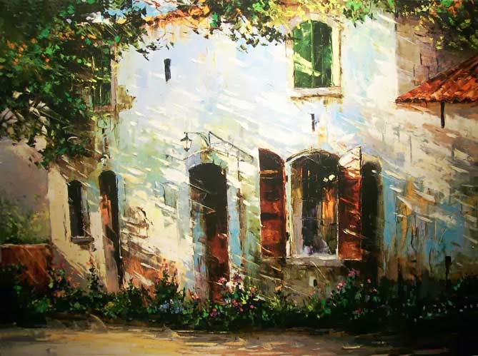 pintando casas interesantes, flores, e interiores, y el contraste de luz y oscuridad.