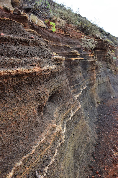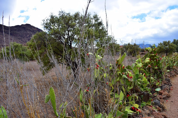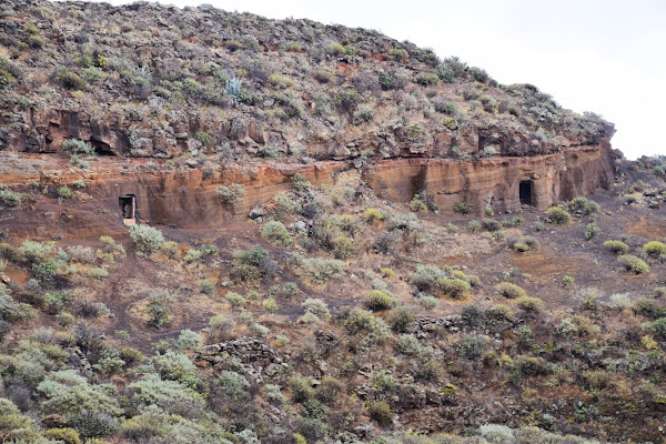 Al llegar al collado de Vueltas de Adeje, comenzamos a descender de manera más pronunciada, tomando un camino empedrado en zig zag que nos llevaría por territorio de pastores y ganado. Es interesante citar el hecho de que el sendero se usaba desde tiempos inmemorables para trasladar a ovejas y cabras desde las poblaciones de las zonas bajas hasta las cumbres, donde abundaba un pasto fresco y jugoso con el que alimentar a los animales.