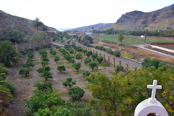 Según descendíamos aparecían ante nosotros las primeras casas que anunciaban la llegada a la meta, en Santa Lucía de Tirajana, que es uno de los núcleos de población asentados en la llamada Caldera de las Tirajanas, un valle que abarca 35 kilómetros cuadrados, pletóricos de vegetación y campos de cultivo.