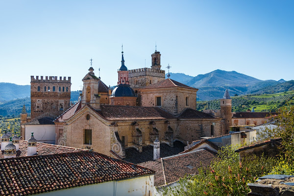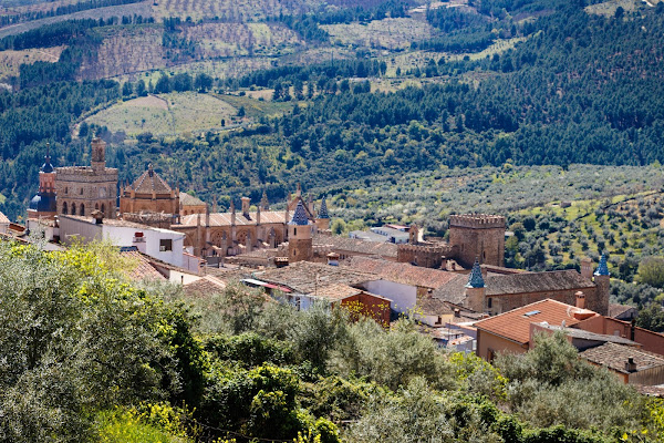 Hoy comenzamos una visita al pueblo de Guadalupe (Cáceres, Extremadura) en la que podremos apreciar sus varios tesoros y que publicaré en varios post. Veremos el Real Monasterio de Santa María de Guadalupe, principal motivo de la visita, pero también su plaza, sus calles y la Escuela de Infantes donde actualmente se ubica el Parador Nacional. En esta primera foto de portada ya vemos la impresionante fachada principal de la iglesia como una fortaleza inexpugnable. Te invito a comenzar este bonito paseo conmigo.