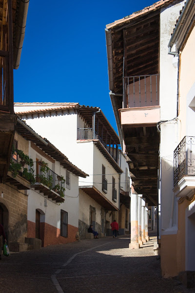 En el camino al Barrio de Abajo atravesamos los arcos de Sevilla y de la Eras, que son lo que quedan de las antiguas murallas con preciosas balconadas floridas y calles con columnas de madera