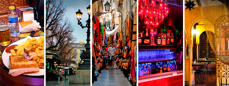 6. El tapeo por la calle Elvira no debe faltar en un viaje a Granada. Es una callecita muy céntrica junto al barrio del Albaicín llena de barecillos donde tapear bueno-bonito-barato. Aunque Granada está llena de lugares donde tapear y todos con muy buen ambiente, ésta es la calle más popular, céntrica y con un ambiente joven.7. La Plaza Bib-Rambla se encuentra en pleno centro peatonal. Es la plaza más acogedora de Granada, rodeada de barecitos donde tapear, terrazas y tiendas. Un lugar perfecto donde hacer una pausa para recargar las pilas con buen café calentito y ver el ir y venir de la gente mientras pasa el tiempo.