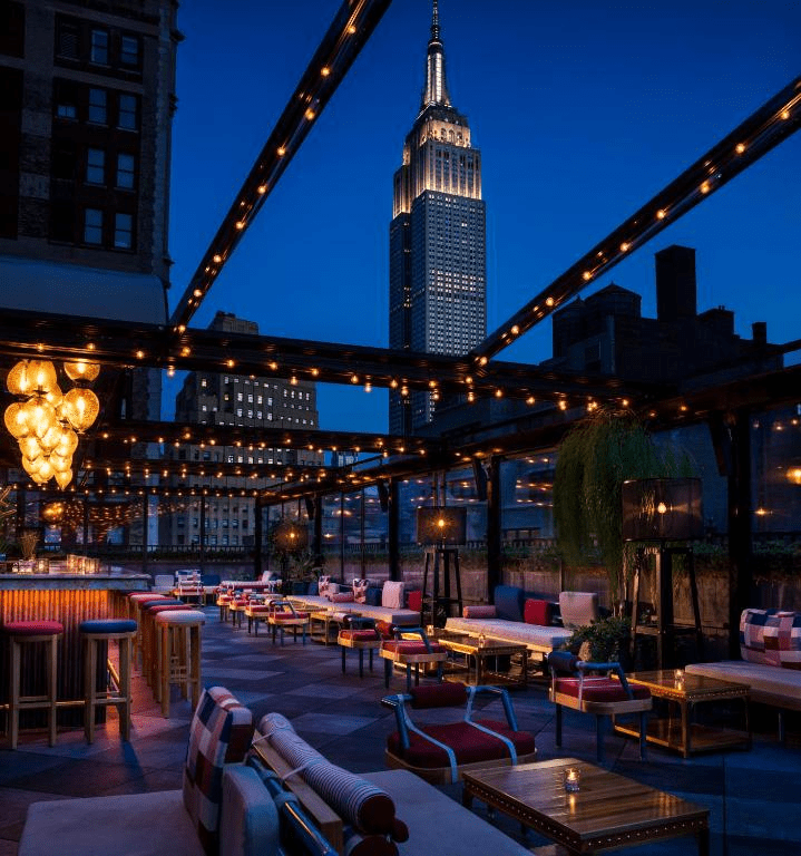 Terraza del hotel Moxy Times Square con vistas al Empire States