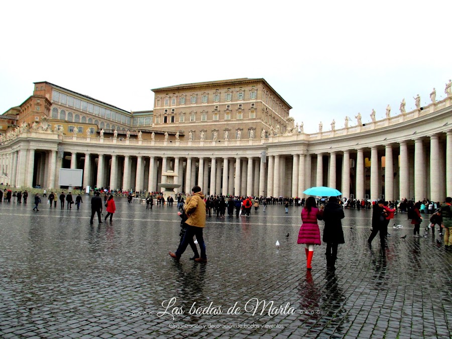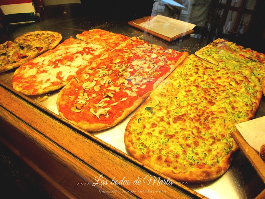 Seguimos caminando por Vía Cola di Rienzo hasta llegar a Piazza del Risorgimento, donde se pueden admirar las murallas del Vaticano.Para llegar a la Piazza di San Pietro tuvimos que andar un poquito más. Seguimos caminando por Vía de Marcherino hasta que cruzamos una de las murallas que rodea la ciudad del Vaticano y llegamos a la PLAZA DE SAN PEDRO. Estuvimos unos 30 minutos admirando la plaza y todos sus rincones. Pensamos en entrar a ver la basílica, pero como había mucha cola y ya la habíamos visto la última vez que estuvimos en Roma, decidimos dedicar ese tiempo para visitar otros lugares de la ciudad.Como ya eran las 14:30 h buscamos algún sitio para comer. Antes de viajar, yo me había hecho un listado de sitios donde podíamos ir a comer/cenar dependiendo del lugar de la ciudad donde estuviéramos, pero la verdad es que ninguno de los que marque cerca del Vaticano estaba de camino a nuestro siguiente destino, así que decidimos ir un poco a la aventura y os aseguro que acertamos. Salimos de la Plaza de San Pedro por la Vía della Conciliazione y callejeando llegamos a la calle Borgo Pio nº 27, donde descubrimos un pequeño establecimiento con PIZZA AL TAGLIO que estaba muy buena!! Tienen menú, y por tan solo 5 euros, disfrutamos de un trozo de pizza casera con una bebida. Tienen mesas en su interior, así que podéis comer sentados en un ambiente familiar. El dueño del local es muy simpático y además habla un poco de español.