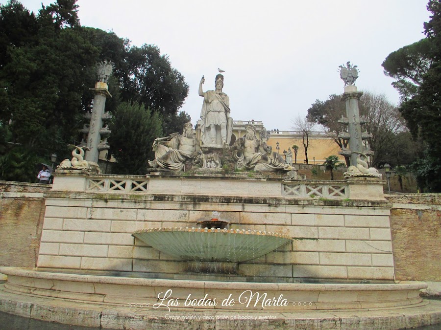 La primera de las paradas fue PIAZZA DEL POPOLO. Está a tan solo 5 minutos andando del hotel y es una plaza preciosa, con una obelisco en el centro rodeado de cuatro leones. Como estaba chispeando no había mucha gente en la plaza, así que pudimos tomar unas fotos muy bonitas.