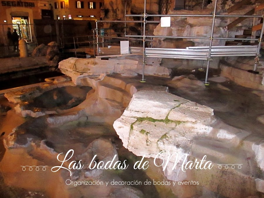 Después de descansar un ratito, salimos del hotel para dar un paseo y cenar algo. Bajamos por Vía di Propaganda hasta llegar a Vía Del Tritone. Seguimos por Vía Poli y llegamos a la FONTANA DI TREVI, donde pudimos admirar parte de la belleza de esta plaza/fuente. Y digo esto porque la están restaurando, y aunque puedes admirar la fuente desde otra perspectiva. La Fontana está cubierta por redes y por andamios, con una pasarela en el centro para que los turistas puedan pasar y ver como progresa la restauración. A pesar de que no hay agua nosotros cumplimos con la tradición y lanzamos nuestra monedita.