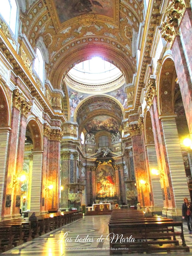 Cruzamos por la plaza que queda justo delante y callejeando llegamos a VÍA DEL CORSO, una de las calles más conocidas de Roma porque es donde se encuentran todas las tiendas de ropa. Nada más salir a Vía del Corso encontramos una iglesia que se encontraba cubierta por redes y con una pasarela que por la que accedías al interior. La verdad es que por fuera no era nada del otro mundo, pero aun así decidimos acercarnos a ver como era por dentro, ya sabéis, eso de cotillear las mujeres lo llevamos dentro. Y madre mía, creo que era la IGLESIA MÁS BONITA DE ROMA. Su nombre es SAN CARLO AL CORSO, y de verdad os digo, que no podéis dejar de ir, es impresionante no, lo siguiente.
