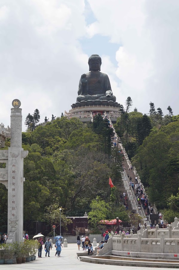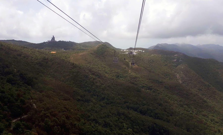 También fuimos al monasterio de Po Lin, en la Isla de Lantau, junto al que se encuentra el Buda Tian Tan, una estatua gigante de bronce. Puedes llegar hasta allí en teleférico, unos veinticinco minutos de trayecto en los que disfrutar de unas vistas espectaculares.