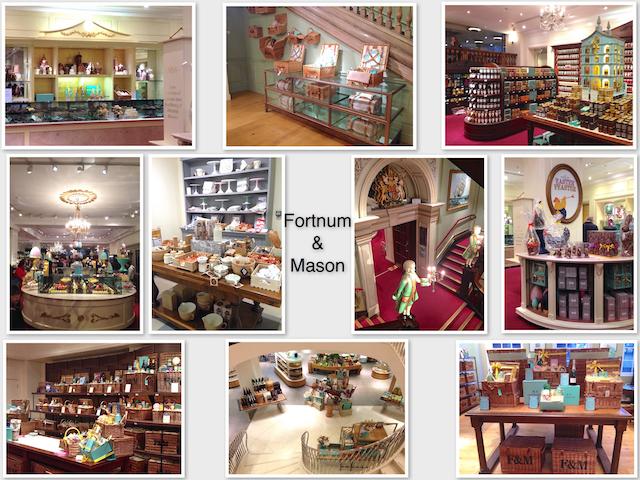 Otro sí o sí de los gourmets, la tienda en Piccadilly de Fortnum & Masons (F&M). En 1.707, el propietario de caballerizas Hugh Mason y el lacayo real William Fortnum establecieron un negocio juntos como tienda de comestibles y comerciantes de té. Y por supuesto comenzaron a servir el famoso Afternoon Tea, el té de las 5, en sus lujosos salones. Dos plantas de Delicatessen (sótano y planta baja) y una de menaje (primera planta) que no te puedes perder. Yo es que las plantas de moda y ropa no las transito demasiado. Son famosísimas sus cestas de picnic, desde 60 a 600 libras!!!!! Listas para hacer uno de esos picnics que tanto les gusta a los ingleses, y a mí. Tés, cafés, mermeladas, cookies, chocolates, … , todo ello envuelto con primor. Eso sí, a veces rozando lo cursi, algunos tarros de quesos o mermeladas son de lo más kitch!!! No sabría por donde empezar a elegir por la cantidad de alimentos que venden a cual más exquisito, lo vulgar no tiene cabida aquí. Yo desde luego me quedo, sin duda, con sus cestas de picnic y su latas de tés. Me compré una lata de galletas con ese color verde suyo tan característico y una bolsa de rafia para mi bici.