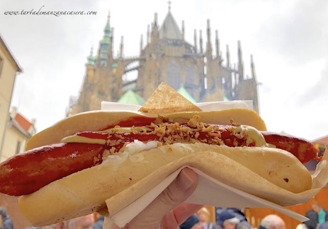 Y además de dulce, los puestos de comida del Hrad ofrecen tentempiés como este. Porque no sólo de dulce vivo yo. Ahora os enseñaré algunos de los platos que hemos probado en Praga.
