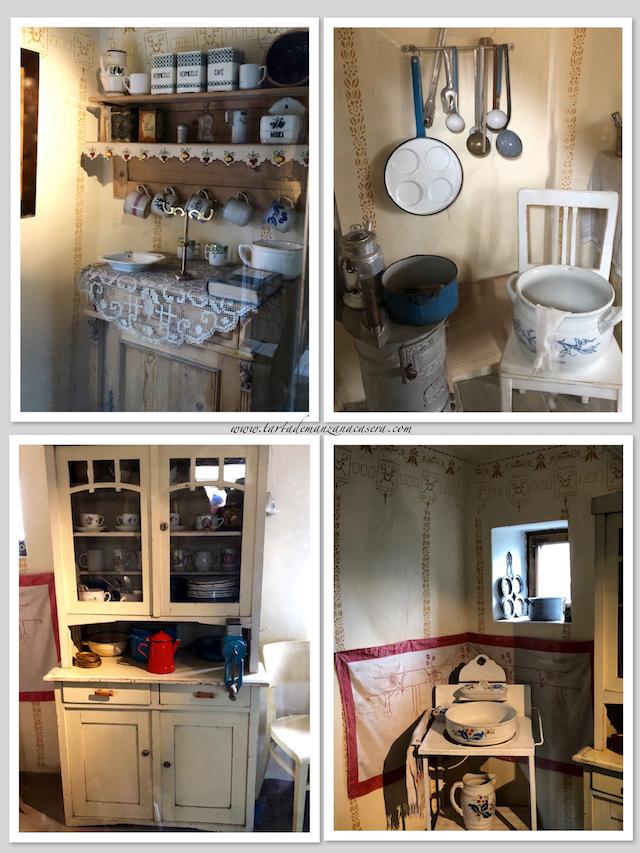 En el castillo, en el Callejón del Oro, del s. XVI, podéis ver unas casas situadas en los arcos de la muralla donde vivían arqueros y orfebres. Hay estancias con objetos de la época. Y yo que me voy fijando en cómo cocinaban en esa época, me llamaba la atención las cocinas con sus platos, tazas, tarros, jarras, cafeteras, molinillos, … y por supuesto moldes para bizcochos y esas sartenes tan prácticas para hacer 4 tortitas de una sola vez.