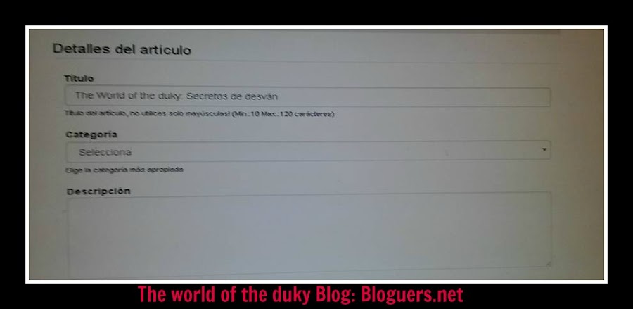 - Introduce pequeña descripción entrada