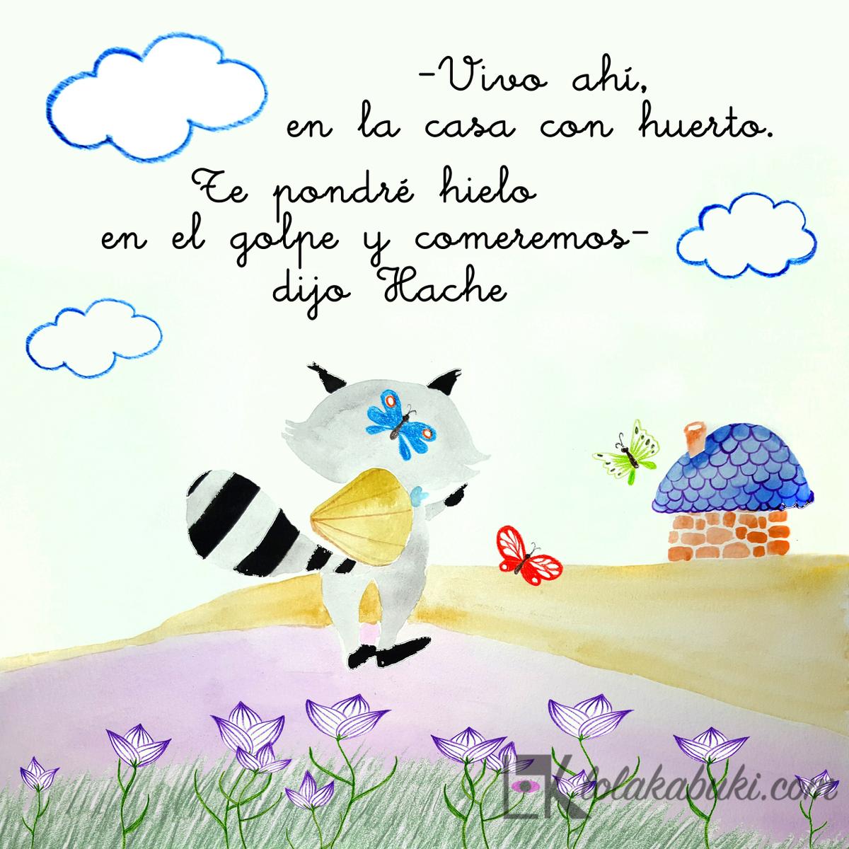 En este cuento trabajamos la letra H. La H tiene miga, es una letra muda y además si la combinamos con una C, se convierte en CH. No pasa nada. Nuestro simpático mapache protagonista la utilizará de milformas diferentes en el texto para que nos fijemos y aprendamos todas esas opciones diferentes.