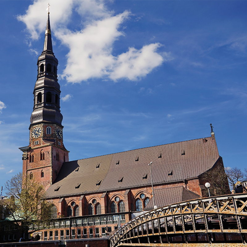 La iglesia es una de las cinco principales iglesias luteranas de Hamburgo. La base de su chapitel es del siglo XIII. Está en una isla cerca de lo que antiguamente era el límite sur de la ciudad medieval frente al puerto histórico del río Elba. Ha sido tradicionalmente la iglesia de los marineros.