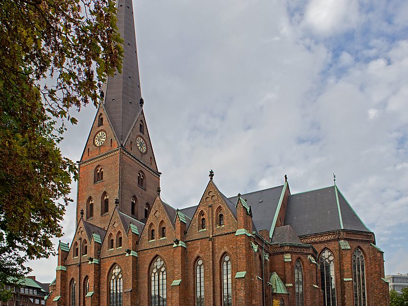 Es una de las 5 iglesias principales de la ciudad. En 1529 se convirtió en iglesia luterana. Fue reconstruida después de la guerra. En su interior destaca el órgano de Arp Schnitger, famoso constructor alemán de órganos. Está dedicado a Santiago el Mayor. Su torre mide 125 metros de altura. Iglesia de estilo gótico.