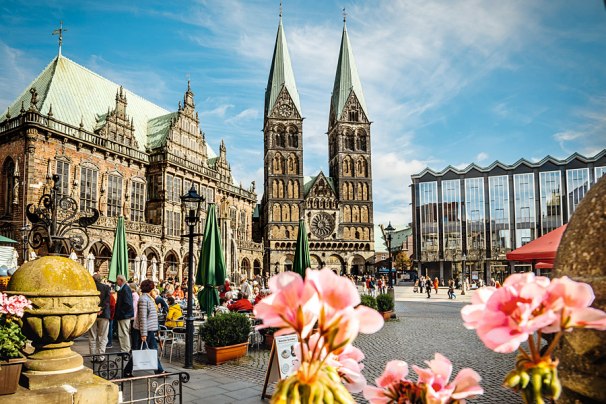 El centro de la ciudad es la Marktplatz o plaza del mercado. Está rodeada de muchos edificios como el Ayuntamiento, el Schütting, el parlamento y la catedral en la que puedes subir a la torre por sus estrechas escaleras, la entrada es gratuita. También puedes ver la estatua de Rolando y el monumento a Bismarck.