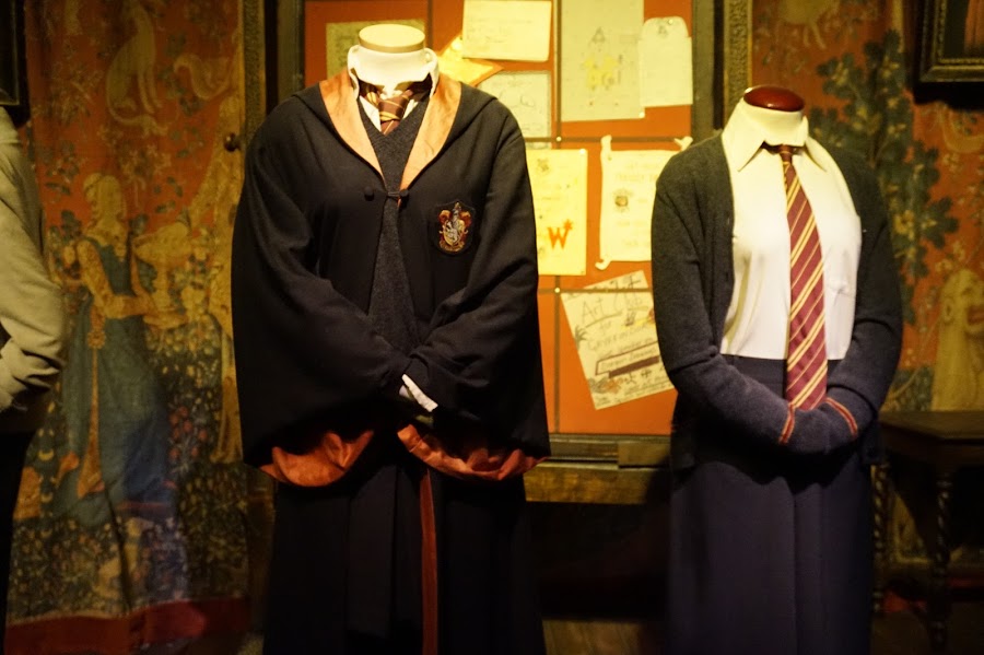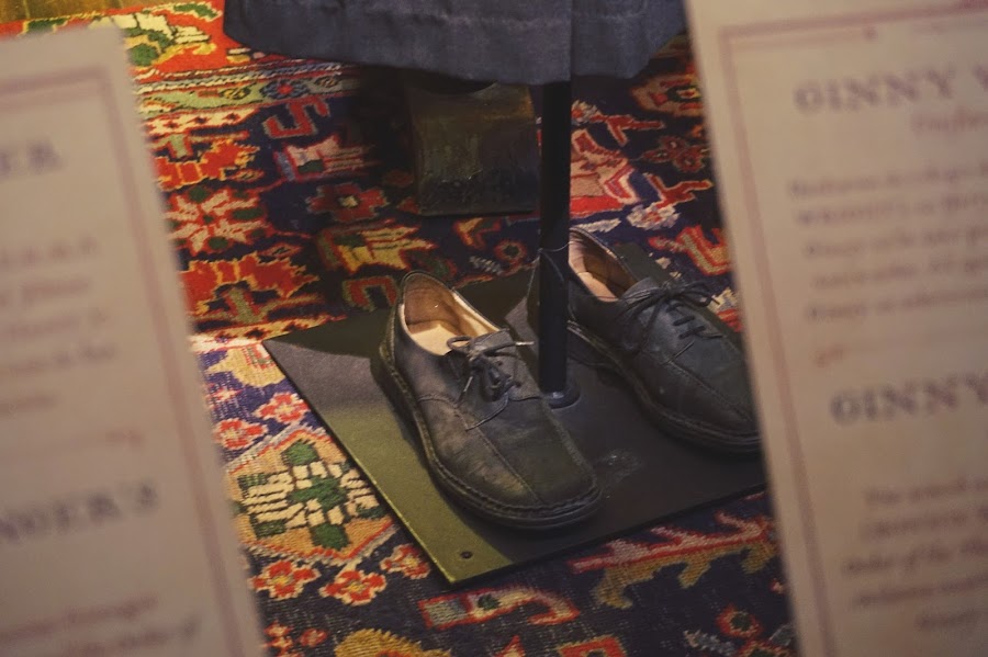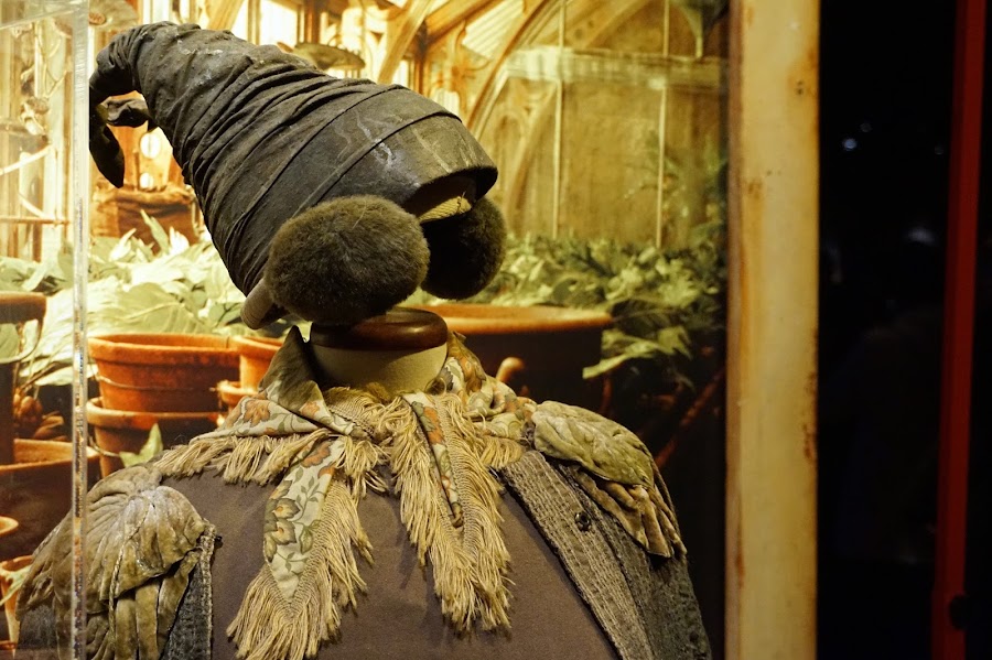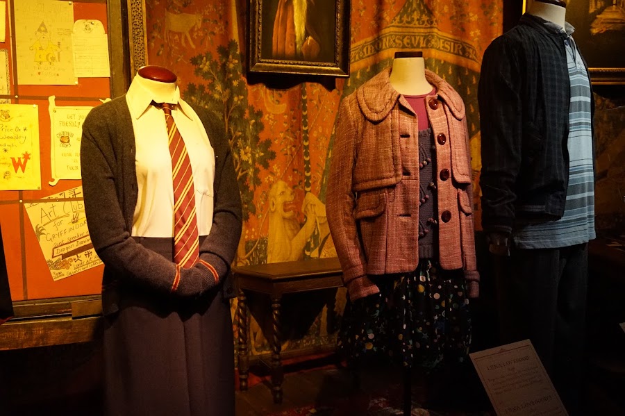 Puedes ver desde trajes originales, tazas, utensilios, zapatos, espejos, decorados, armarios, ropa, gafas…todo lo que va saliendo en la película. ¡Es bastante chulo! Pero no puedes disfrutarlo. La exposición tampoco va ordenada por orden cronológico, es decir, lo mismo te encuentras un traje de la quinta pelicula, que lo mismo al avanzar te encuentras el primer traje de Emma Watson.